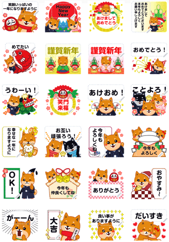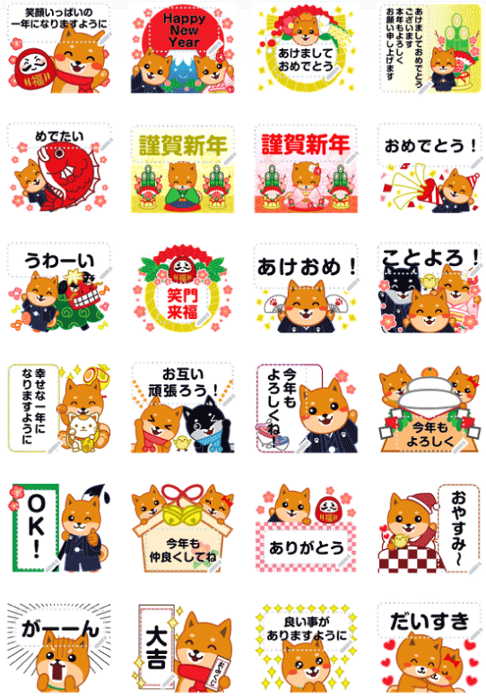 スタンプの内容は同じです。まだ見たことがなかった方は、来年のお正月に是非どうぞ!